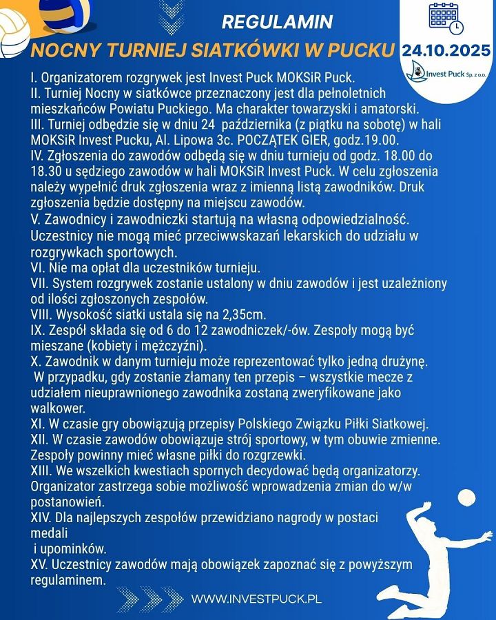 Zapraszamy do udziału w „Nocnym Turnieju siatkówki w Pucku"
